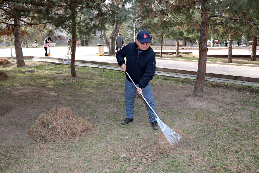 Особое внимание было уделено очистке территории сквера им. М.Горького, а также ирригационных сетей, прилегающих к ведомственному зданию.